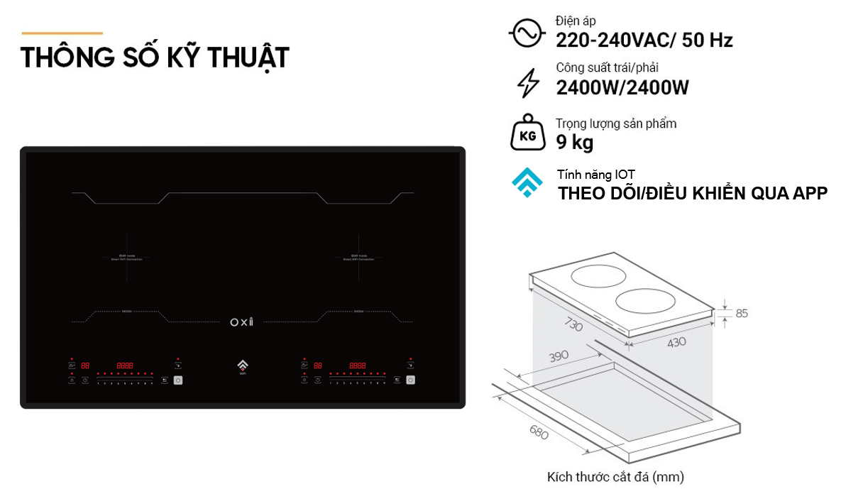 Sở hữu thiết kế mặt kính hoàn toàn mới, 2 vùng nấu độc lập, rộng rãi với công suất mỗi bên lên tới 2400W cùng nhiều tính năng tiện lợi, sản phẩm Bếp đôi điện từ Oxii IOT chính là người bạn đồng hành cho mọi bữa ăn ngon của gia đình bạn, giúp tiết kiệm thời gian nấu mà vẫn giữ trọn dinh dưỡng.