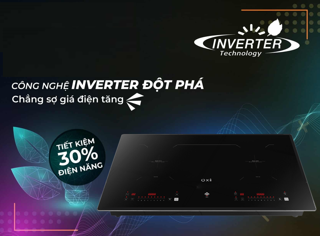 Tích hợp công nghệ INVERTER vào sản phẩm, Bếp đôi điện từ Oxii Base cho khả năng tiết kiệm điện tối ưu hơn nhờ sử dụng công nghệ biến tần, giúp giữ ổn định công suất bếp, kiểm soát tình trạng đóng ngắt liên tục khi đun nấu.