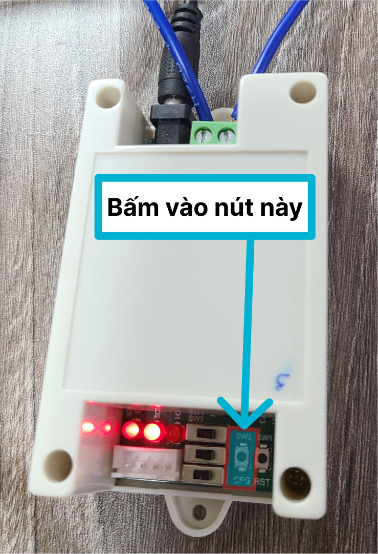 Sau đó đưa thiết bị điều khiển VRV về chế độ chờ kết nối bằng cách nhấn nút kết nối trên thiết bị, khi đèn led trên thiết bị nhấp nháy màu đỏ là thiết bị đã về chế độ chờ kết nối thành công.