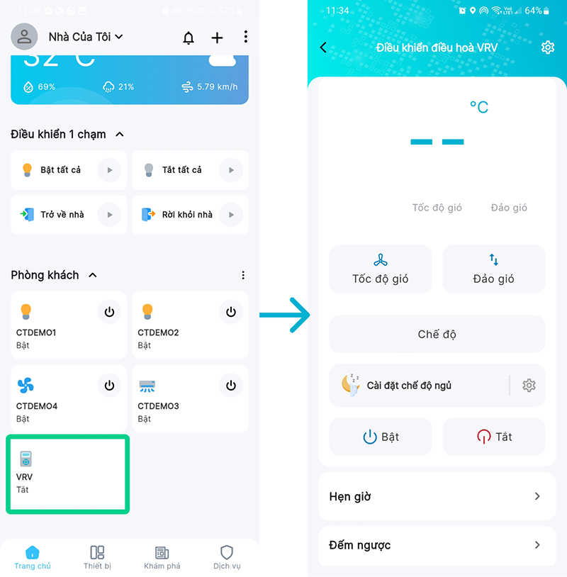 III. Hướng dẫn điều khiển VRV trên ứng dụng Oxii