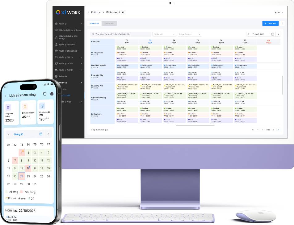 Phân ca thông minh, đăng ký/duyệt ca online, quản lý Overtime tự động với cảnh báo real-time khi vi phạm quy định.